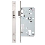72mm c/c DIN Night Latch (Square Or Radius Profile), Satin Stainless Steel