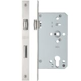 72mm c/c DIN Roller Sash Lock (Square Or Radius Profile), Satin Stainless Steel