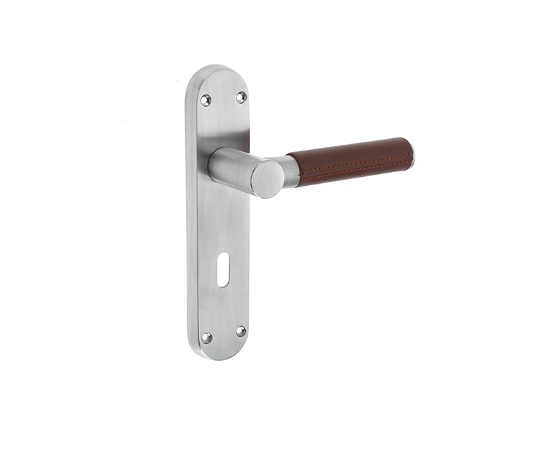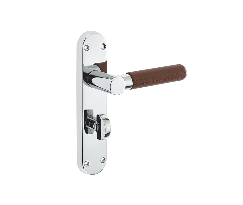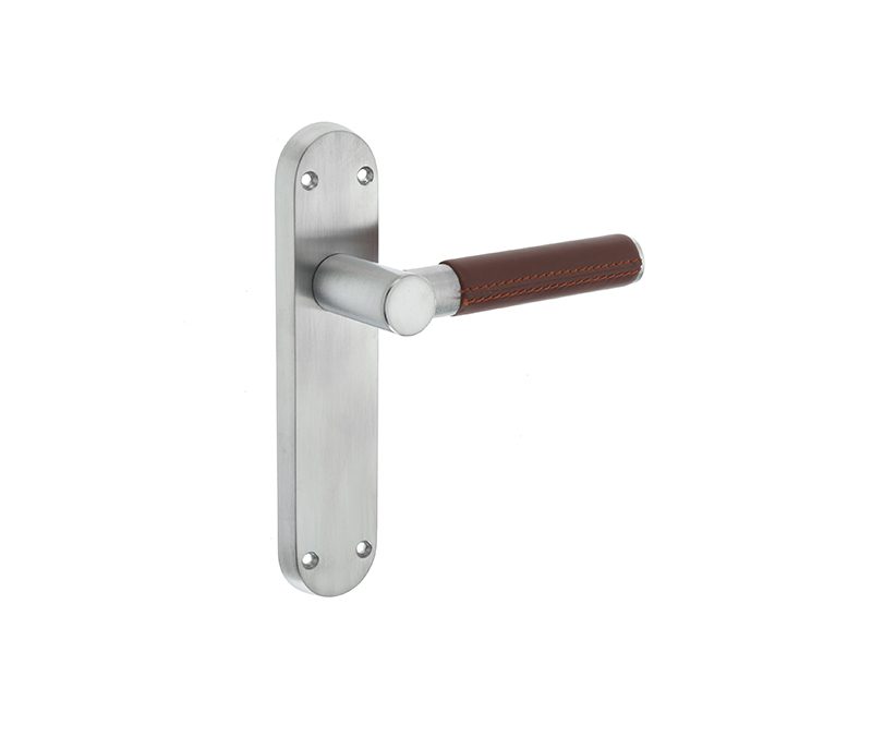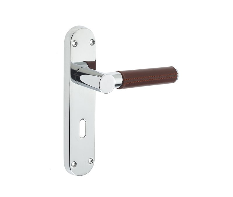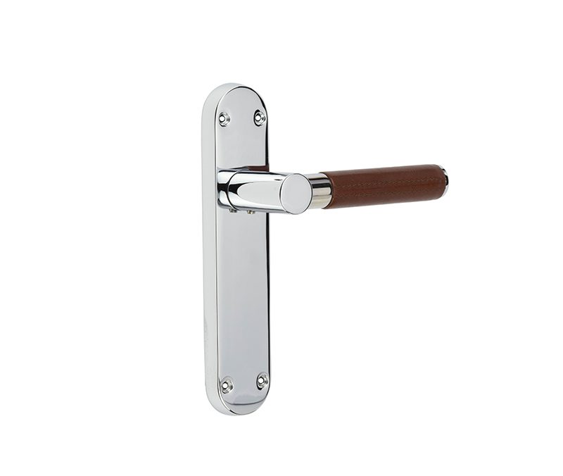 Ascot Polished Or Satin Chrome & Brown Leather Door Handles