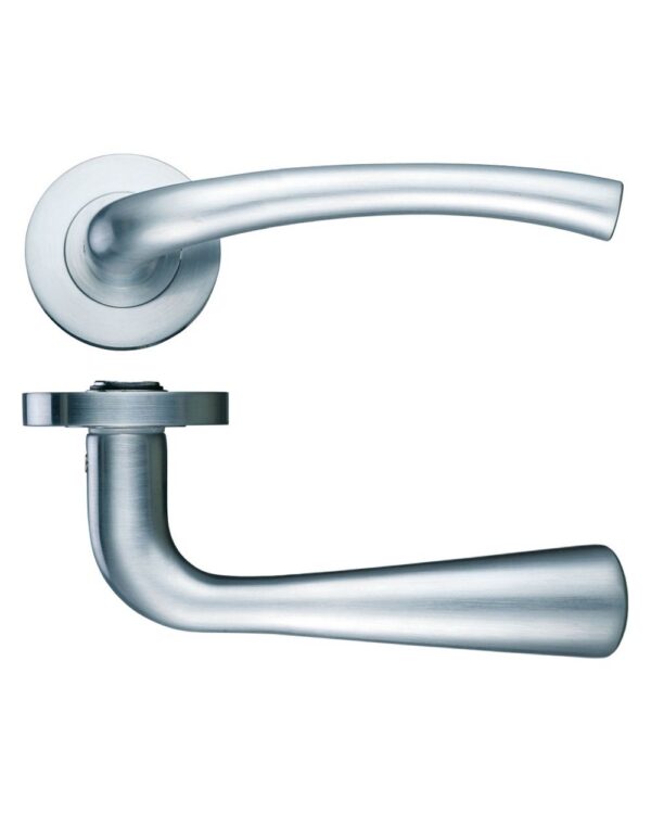 • The Assisi Door Handle on Rose from Zoo Hardware has a slim and smooth wave shaped lever on a round rose