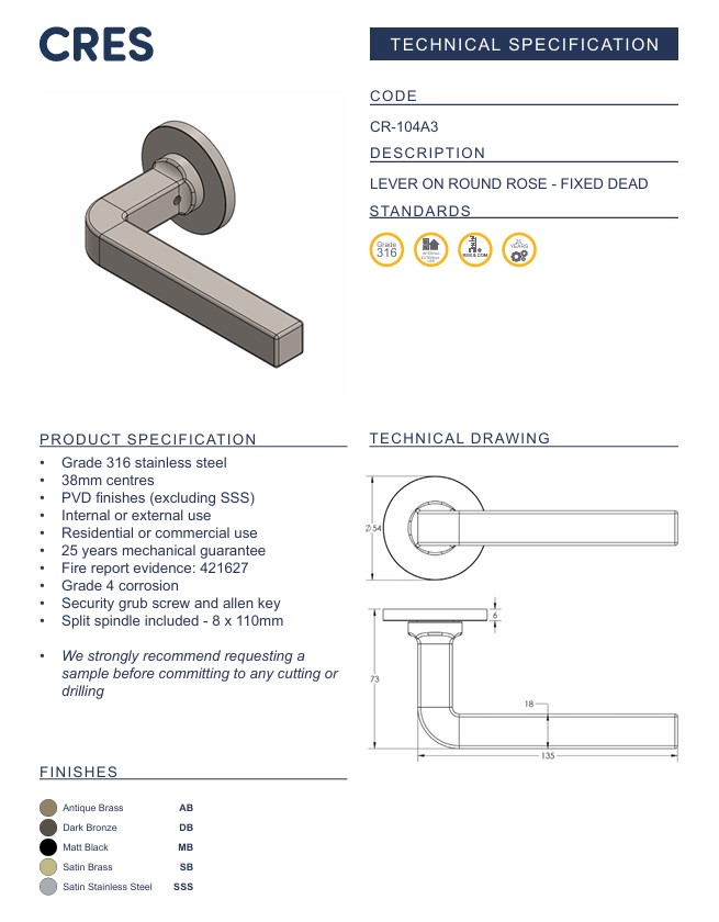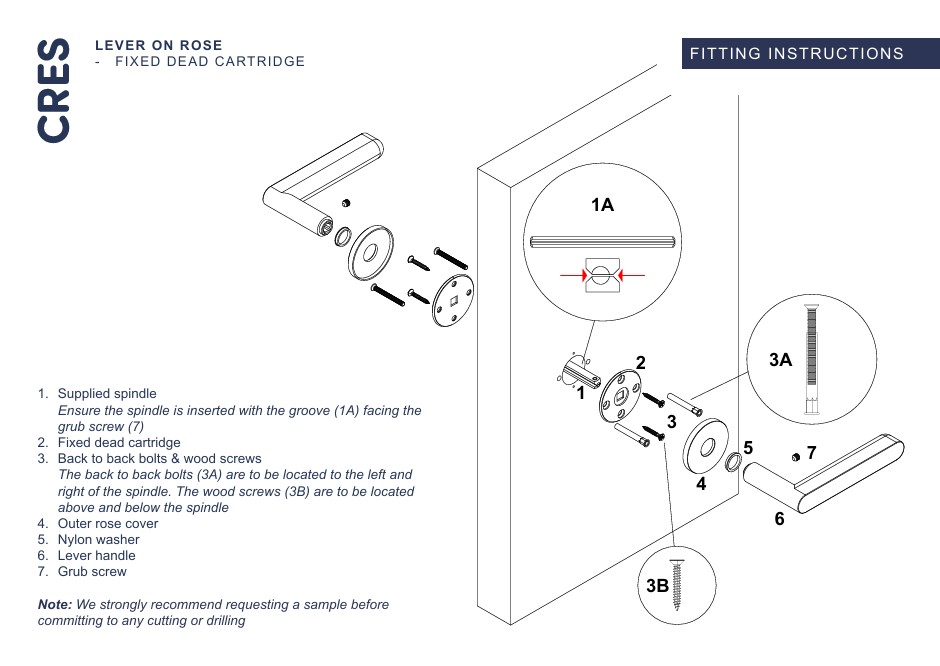 Fittings Included: Supplied with all fixings – 2x 304 M6 x 7mm security grub screws (matching finish), 1x Allen key, 1x 8 x 110mm split spindle