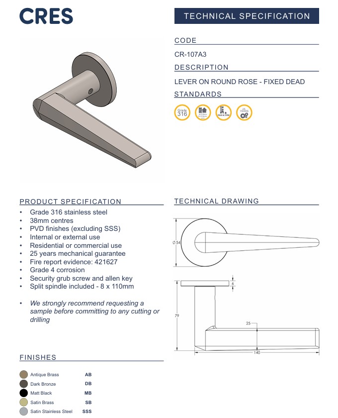 Additional Hardware: Full suite of matching components available, finished to the same high standard for residential and commercial use