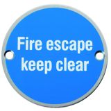 Eurospec Fire Escape Keep Clear Sign, Polished Stainless Steel OR Satin Stainless Steel Finish