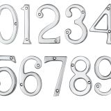 Numerals from 0 -9 The sweeping, round-ended typeface provides clarity at a distance. Two anchor points for secure fixing. The 76mm number is now the most common method of house numbering