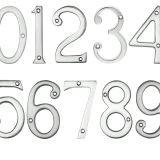 Numerals from 0 -9 The sweeping, round-ended typeface provides clarity at a distance. Two anchor points for secure fixing. The 76mm number is now the most common method of house numbering