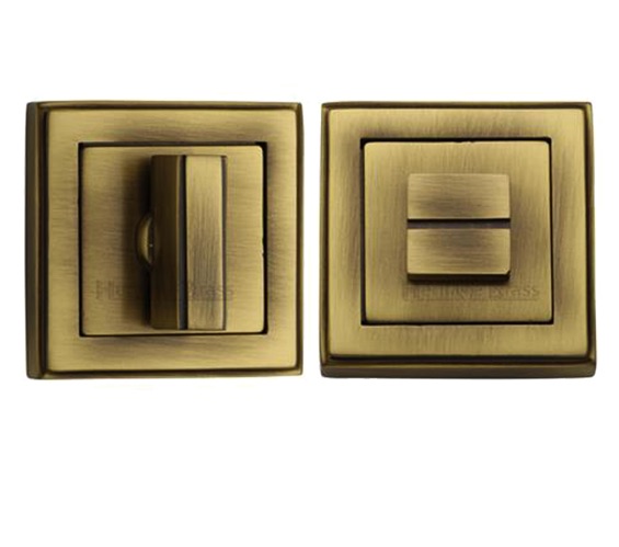 Heritage Brass Art Deco Square (54mm x 54mm) Turn & Release, Antique Brass –