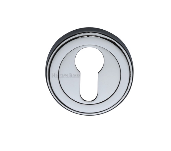 Heritage Brass Art Deco Style Euro Profile Key Escutcheon, Polished Chrome