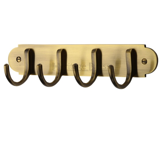 Heritage Brass Coat Hooks On Plate (223mm Width), Antique Brass