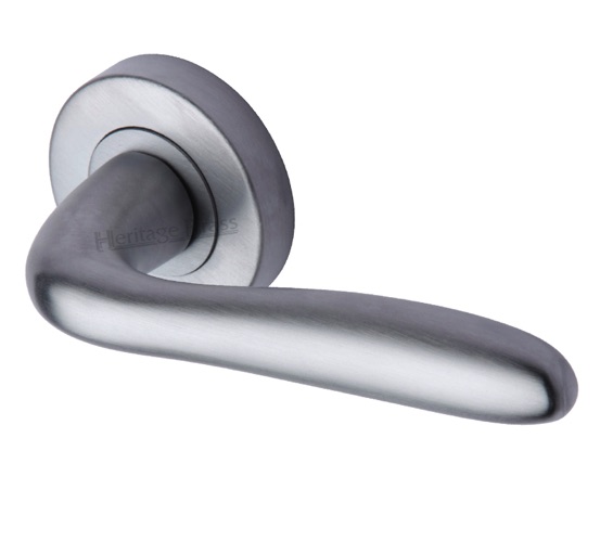 Heritage Brass Columbus Satin Chrome Door Handles On Round Rose (sold in pairs)