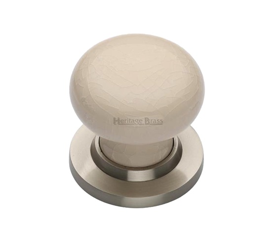 Heritage Brass Cream Crackle Porcelain Mortice Door Knobs, Satin Nickel Rose (sold in pairs)