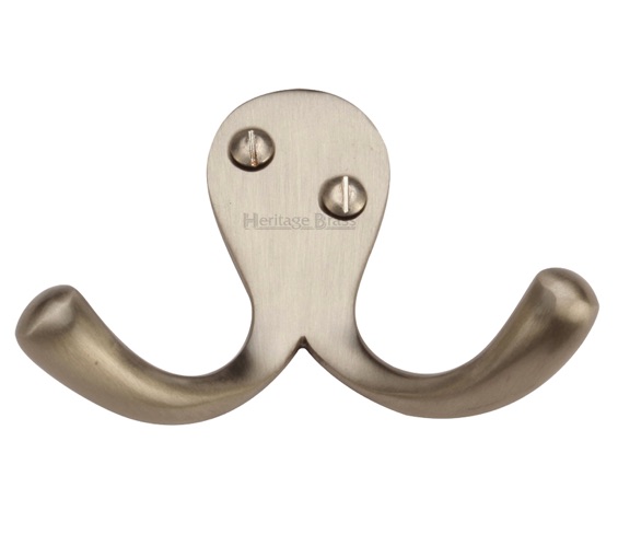 Heritage Brass Double Robe Hook (64mm Width), Satin Nickel