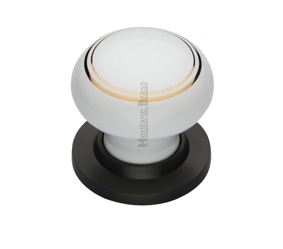 Heritage Brass Gold Line White Porcelain Mortice Door Knobs, Matt Bronze Rose (sold in pairs)