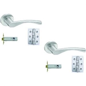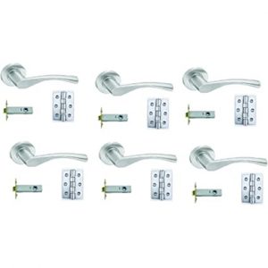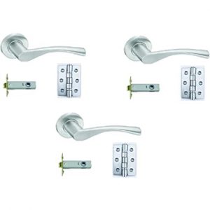 This Door kit includes everything you’ll need to fit your door, Which will save you money and time, including Pair Of Lever on Rose Door Handle, Without Escutcheon.1 Piece of Latch. 1 Pair Of 3 Inches Hinge, With 2 Ball Bearing.