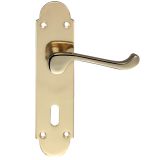 • The Fulton and Bray Oxford door handles on backplate have a classic Victorian style of design with the curved backplate that has visible screw fixings and scroll-shaped curved lever