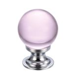 Pink Glass Ball Cupboard Knobs (25mm Or 30mm), Polished Chrome Base
