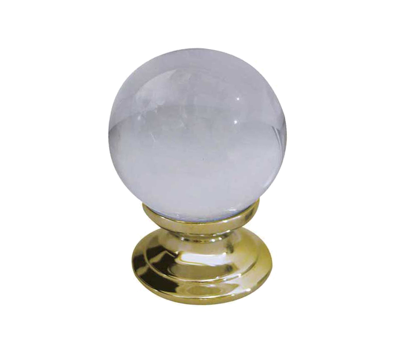 Plain Clear Ball Glass Cupboard Door Knob, Polished Brass