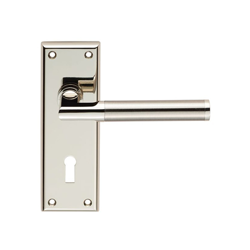 This Serozzetta Door Handle Lever is on a chamfered edge rectangular backplate, an arched flat style lever with a smooth curved top. A simple elegant designer door handle, sleek and curved lines offer both comfort and visual appeal. This Door Handle is available in Dual Finish Polished Nickel & Satin Nickel. It is Available in Lock, Latch, Bathroom, and Euro Profile Lock Style. Dimensions: Backplate – 150mm x 50mm x 10mm, Lever length 119mm, Projection 63.5mm, This Product is Part of the Serozzetta Residential range, and Comes with a 10-year mechanical guarantee