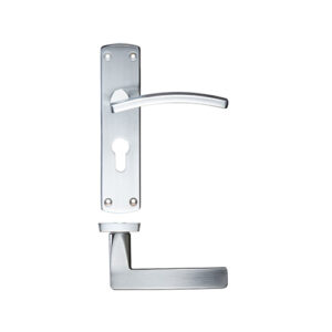 Toledo Contract Door Handles On Backplate, Satin Chrome (sold in pairs)