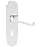 A conventional Victorian style upturned handle on a shaped backplate, elegant and stylish. The back plate has an shouldered shape that gives a classical appearance, while the lever features a scroll style that is very easy to grip. The simplicity of the handle makes it versatile and suitable for many environments