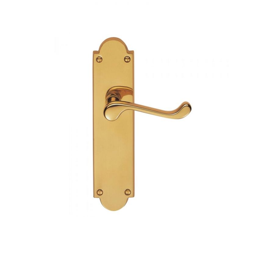 A conventional Victorian style upturned handle on a shaped backplate, elegant and stylish. The back plate has an shouldered shape that gives a classical appearance, while the lever features a scroll style that is very easy to grip. The simplicity of the handle makes it versatile and suitable for many environments. Comes with a 10 year mechanical guarantee and is Fire door rated. Suitable for domestic use. Available in latch, lock, bathroom and euro in polished brass.