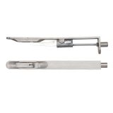 • A stainless steel flush bolt, typically used on pairs of doors to secure the slave door
